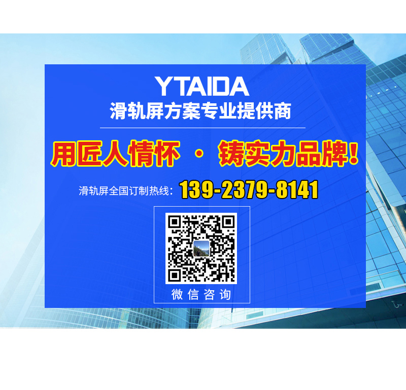 云泰達專業設計、定制各類移動滑軌屏,移動滑軌屏也被稱為滑軌電視、滑軌播放器等,在展覽展示中是一個高科技的全新的互動展示方式,內頁可以是文字、圖片、視頻等等,互動性強, 讓客戶不再拘泥于引導人員的講解,同時不再受引導人員個人素質,水平高低的限制。