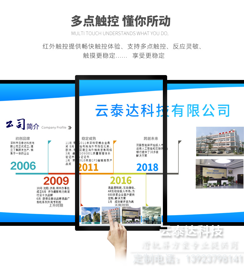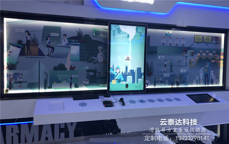 互動滑軌屏將靜態墻面做初級展示,用滑軌屏做補充完善,做到圖、文、動畫的有機結合,讓參觀者更有參觀興趣。且這種手段呈現內容更加清晰明確,一目了然能起到更好的宣傳的作用。