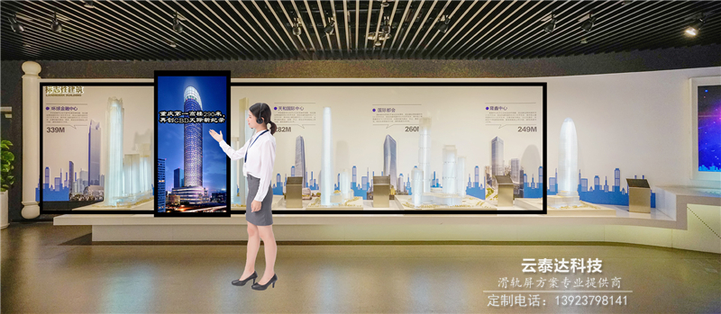 互動滑軌屏作為多媒體新興產品,其不光有獨特屬性,還兼具多媒體展項的共性。其中一點就是承載的信息量非常大,比常規的展墻展板更節省能源和資源,且內容還便于更新替換,為不同時期想要展示不同內容打下堅實基礎。