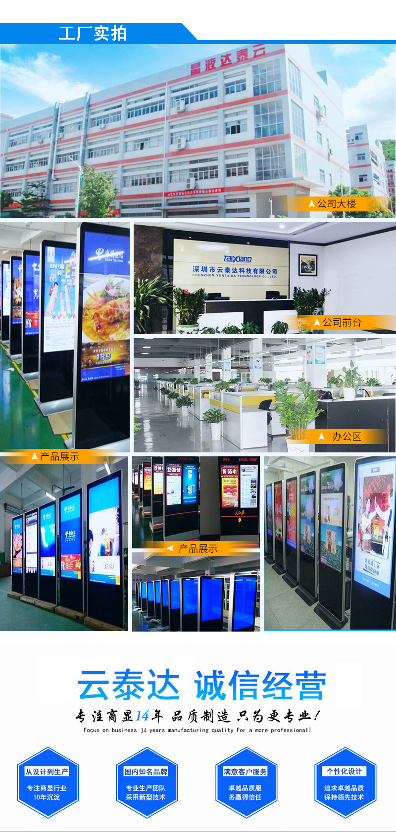 深圳市云泰達科技有限公司成立于2006年,是一家致力于多媒體顯示解決方案的高新科技企業,多年來專注于液晶顯示設備生產、研發與銷售,公司基于多年行業經驗和國內領先觸控技術深度研發出多點觸控、全息投影、人機互動三大類型產品,可為客戶提供多元化數字展廳個性定制方案。