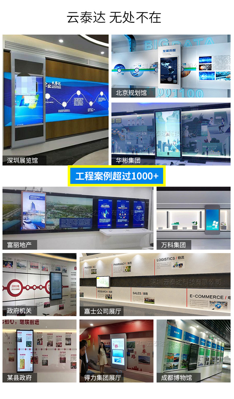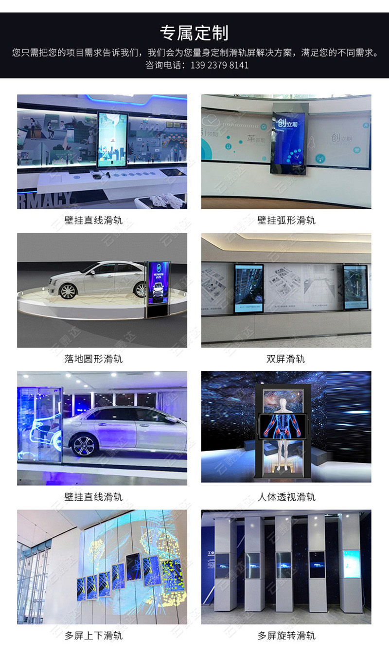 主營業務:滑軌屏、全息展示柜、觸摸一體機、廣告機等;