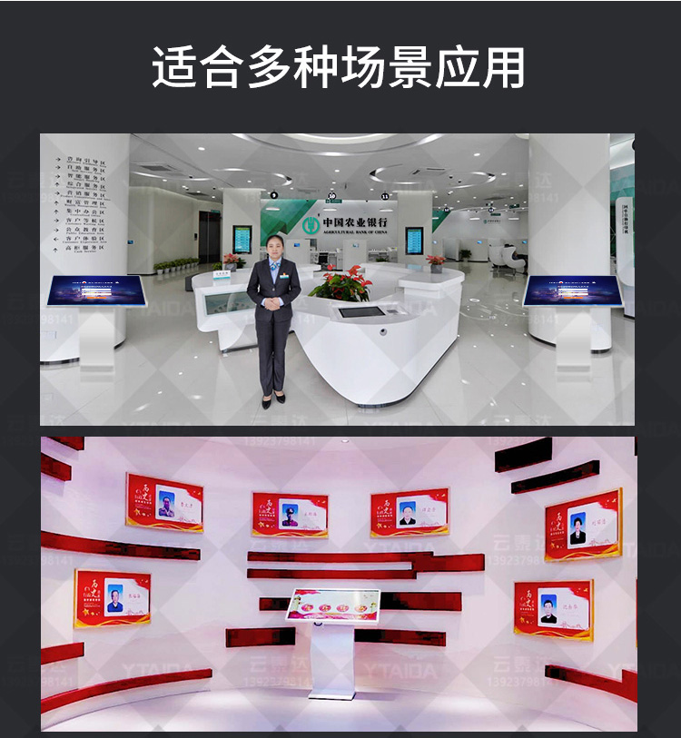 自助查詢機往往采用表面聲波屏,防刮擦、反光少、滑屏速度快、壽命長是它的優點,其次,流線型的外型還具有非常好的親合力和時代感。