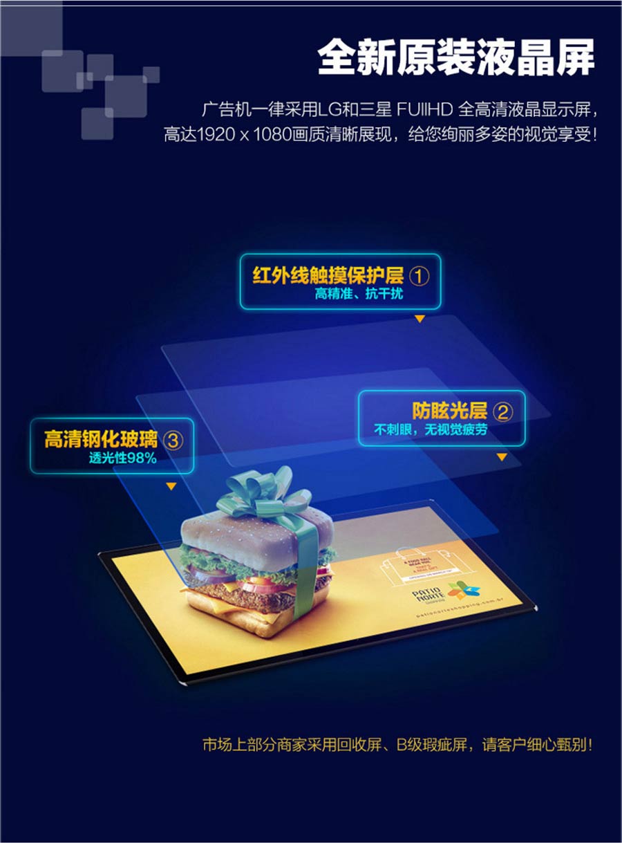 主營業務:滑軌屏、全息展示柜、觸摸一體機、廣告機等;