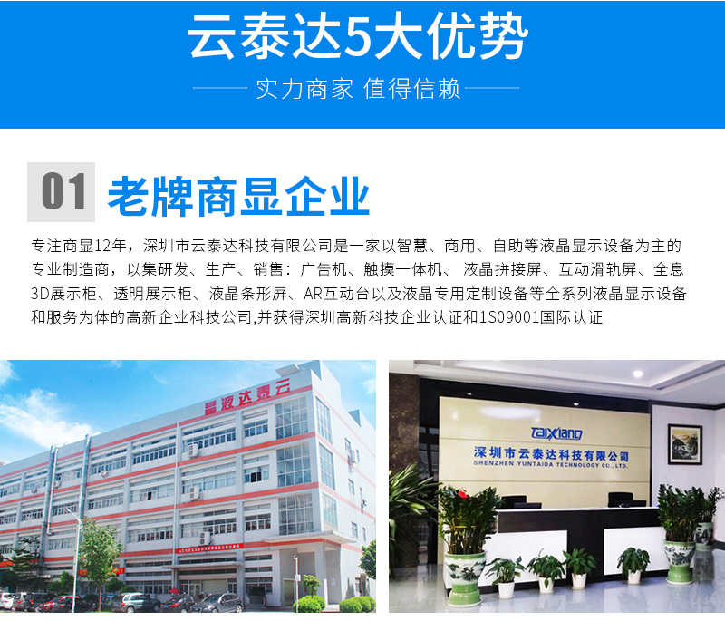 主營業(yè)務(wù):滑軌屏、全息展示柜、觸摸一體機、廣告機等;