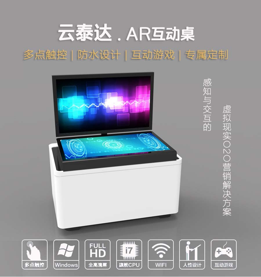 AR互動(dòng)臺(tái)(ARTable) 是云泰達(dá)有限公司研發(fā)的一款高科技虛擬現(xiàn)實(shí)體驗(yàn)產(chǎn)品。