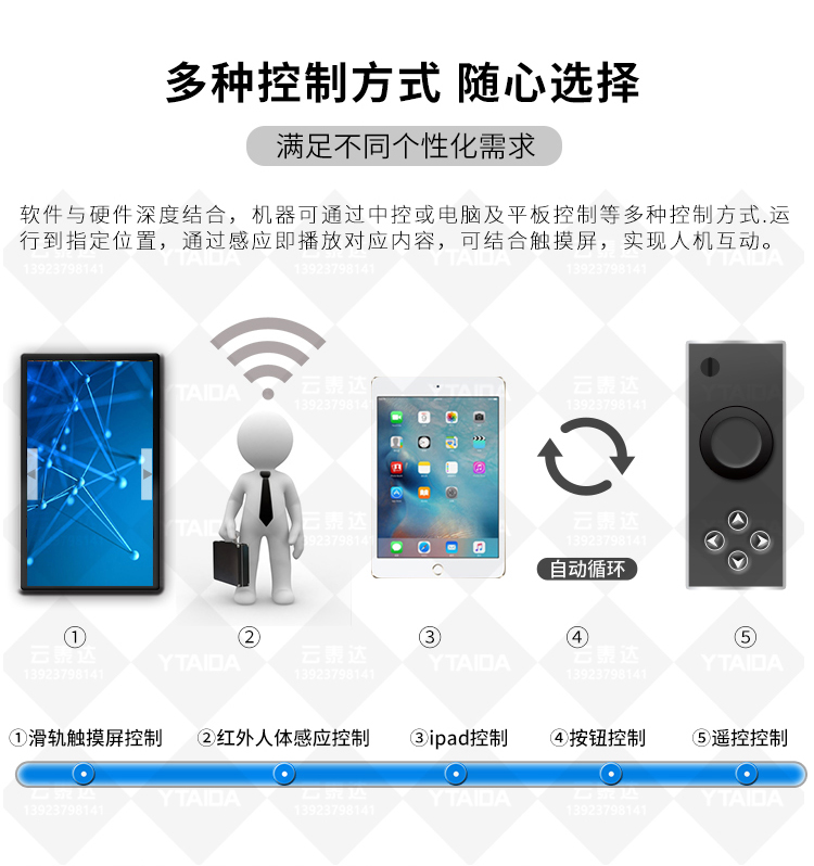 本系統(tǒng)由位置感應(yīng)系統(tǒng),單片機(jī)控制系統(tǒng),上位機(jī)軟件系統(tǒng),中控系統(tǒng),電機(jī)控制系統(tǒng)等子系統(tǒng)構(gòu)成,科技感強(qiáng)。有多種展現(xiàn)方式,點(diǎn)位可以自主設(shè)定,內(nèi)容可以隨意變更,開(kāi)放的控制協(xié)議,方便業(yè)主或者甲方自主開(kāi)發(fā)程序或者進(jìn)行程序嵌套。