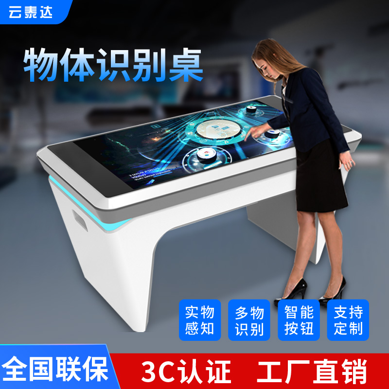 物體識別桌是將人、物、屏三者的結合為一體,屏幕上有不同大小的互動模塊,每個模塊代表著不同的內容,將物體識別桌令牌放在屏幕上時,屏幕會自動識別每個模塊相對應的內容,并顯示在屏幕上,物體的外觀、輪廓、構造等內容讓觀眾有更加清晰直觀的認識,科技感十足夠,達到全方位介紹的效果。