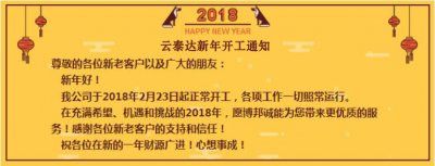 歲月不居,天道酬勤。在過去的一年里,云泰達歷經風雨,盡管道路坎坷,盡管困難重重,但卻成績輝煌!新的一年又至,更需大家努力!?????? ????? [查看詳情]